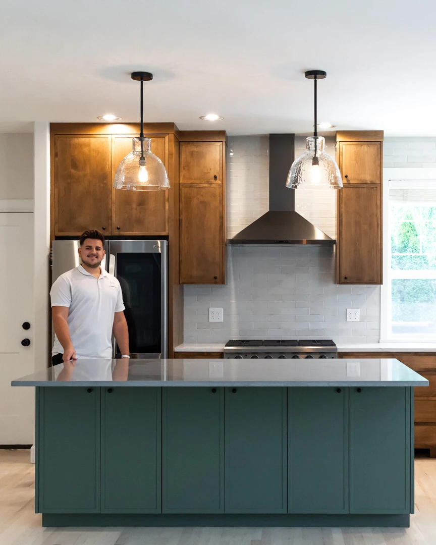 Our main goal for this project was to completely transform the kitchen. The clients came to us with concerns about their outdated cabinets, worn-out countertops, and deteriorating floors. To address these issues, we designed a brand-new kitchen with modern cabinetry and stylish, durable countertops.