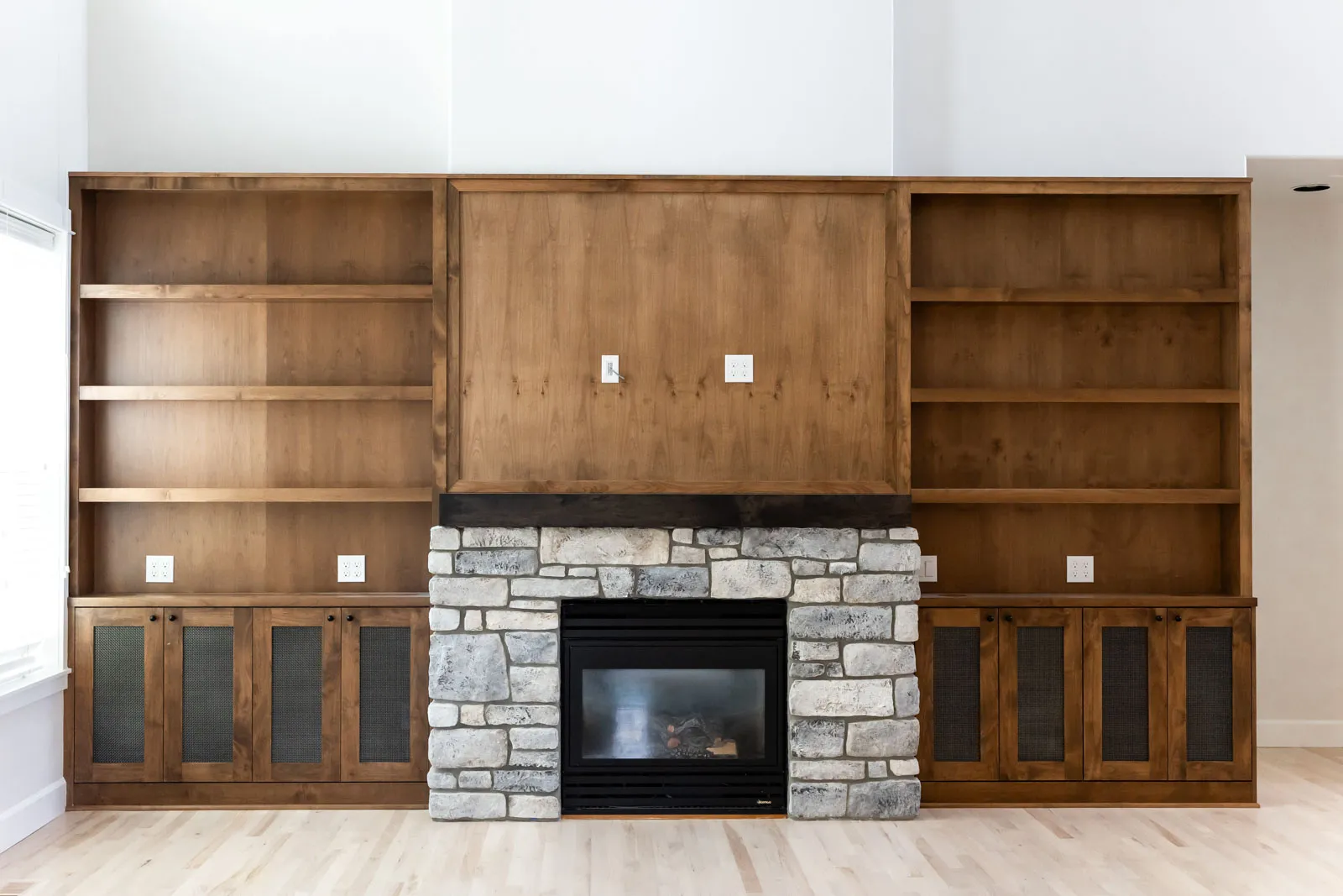 The custom fireplace area became a standout feature, adding both aesthetic appeal and practical value. The refinished hardwood floors tied everything together, giving the main floor a seamless and polished appearance.
