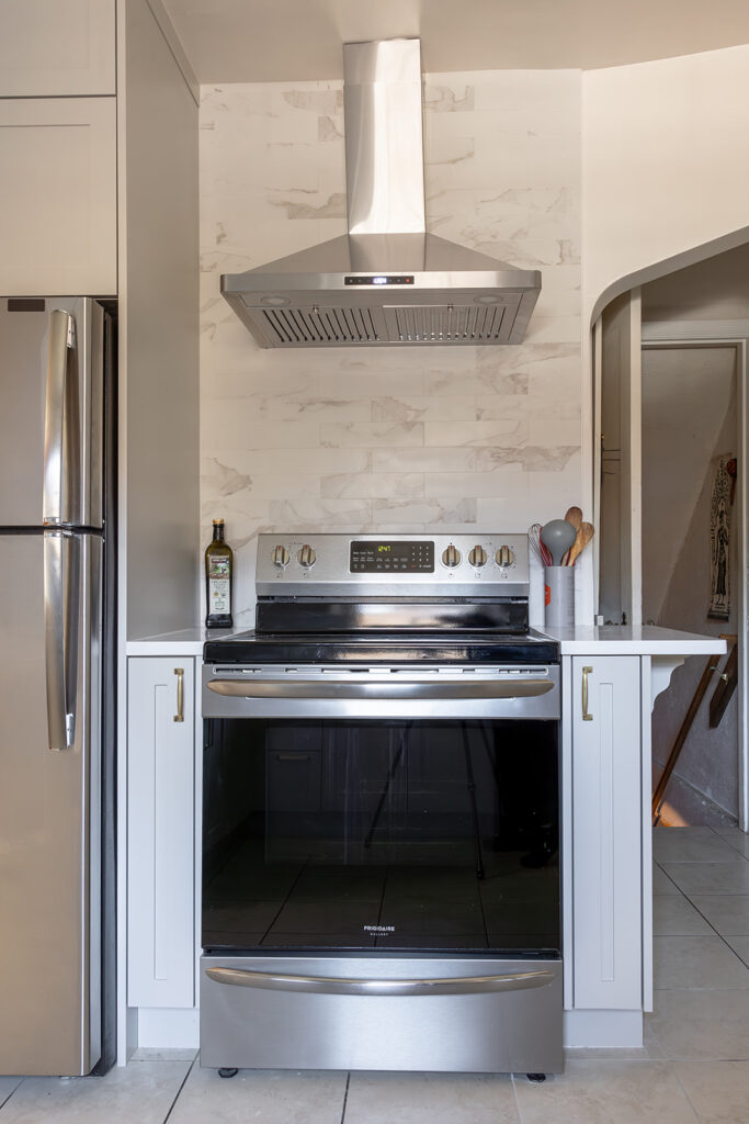 A stylish tile backsplash was added, bringing character and visual interest to the kitchen, perfectly complementing the sleek cabinetry and updated layout.