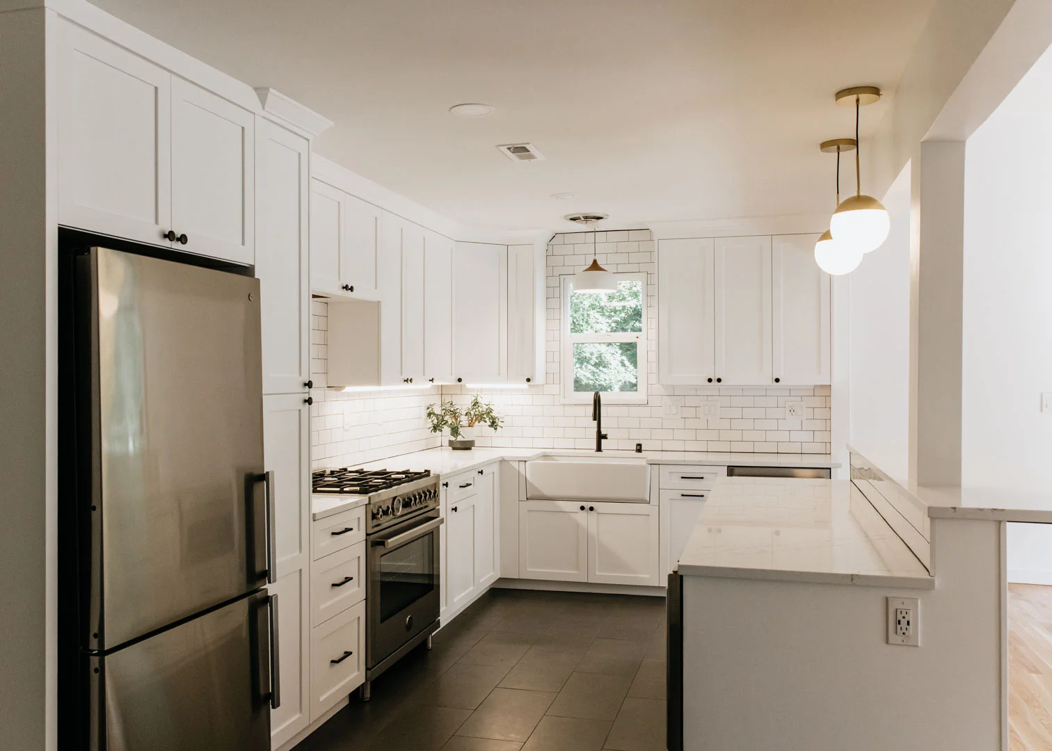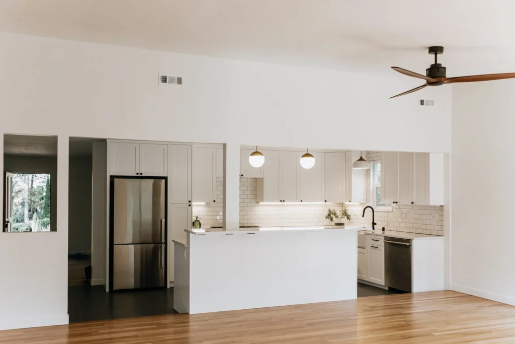 This Ridgefield remodel transformed a cramped, outdated space into a family-friendly haven. We revamped the kitchen, refinished hardwood floors, and gave the home a fresh look, resulting in a space the clients love.
