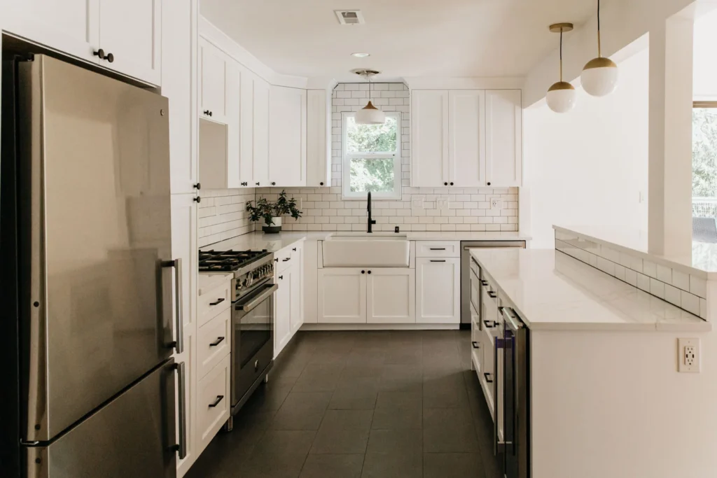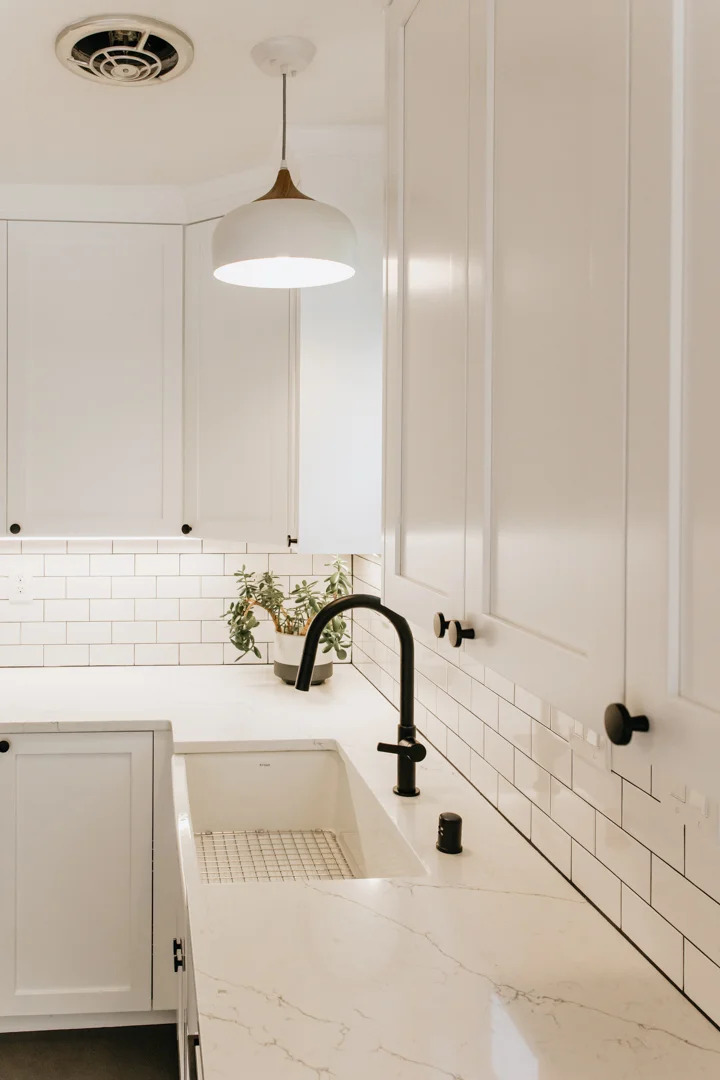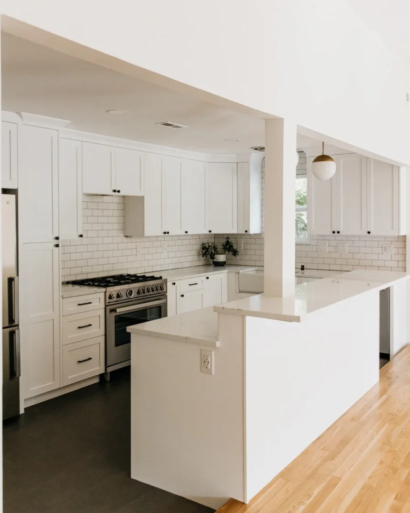 To address these issues, we developed a comprehensive plan that included installing a new beam to open up the space, adding new walls, and laying stylish tile in the kitchen.