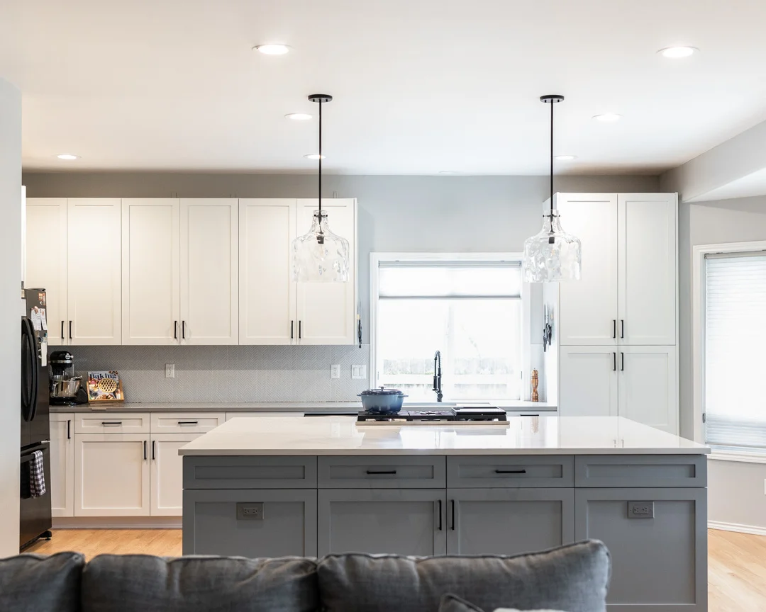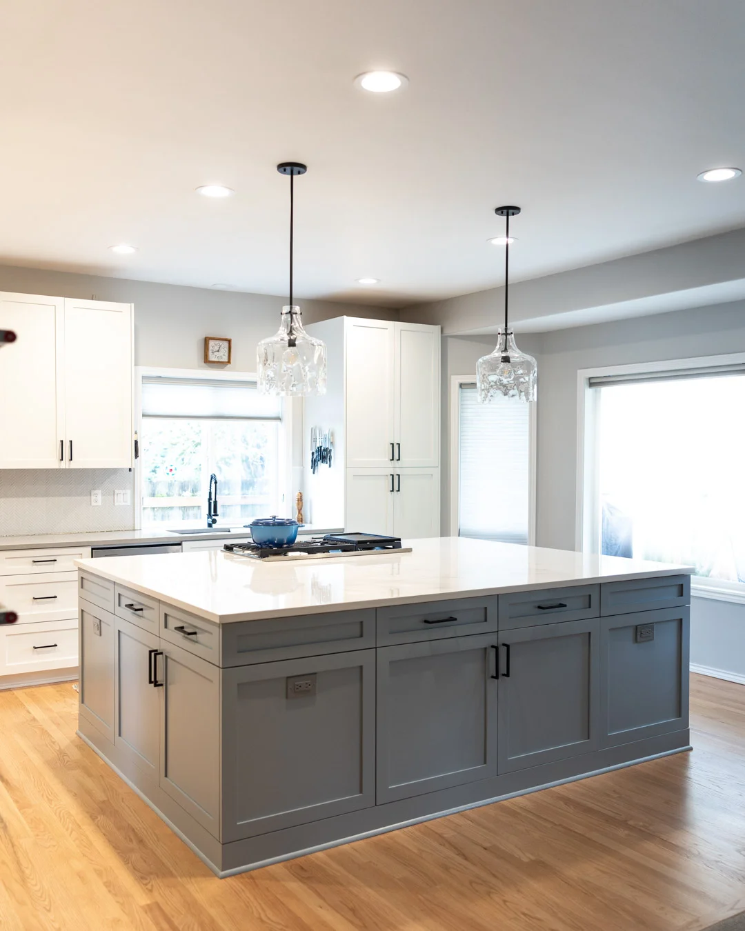 This home was fully transformed to create an open, modern space perfect for the clients’ retirement. We completed a full gut remodel, adding three new bathrooms, a custom kitchen, and refinishing all hardwood floors in just 3 months.