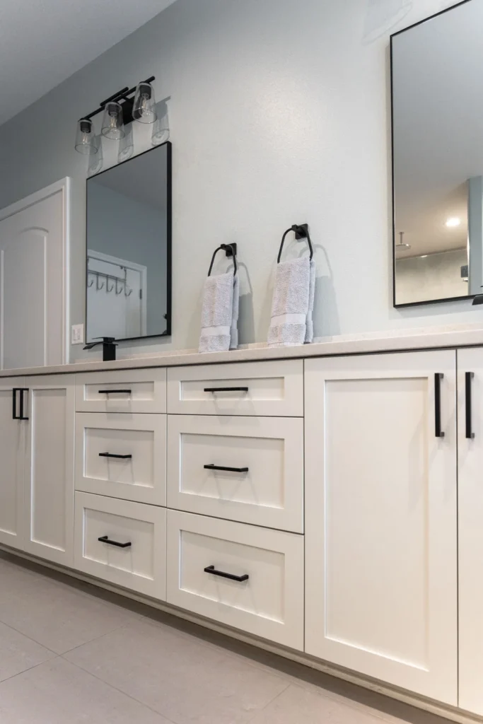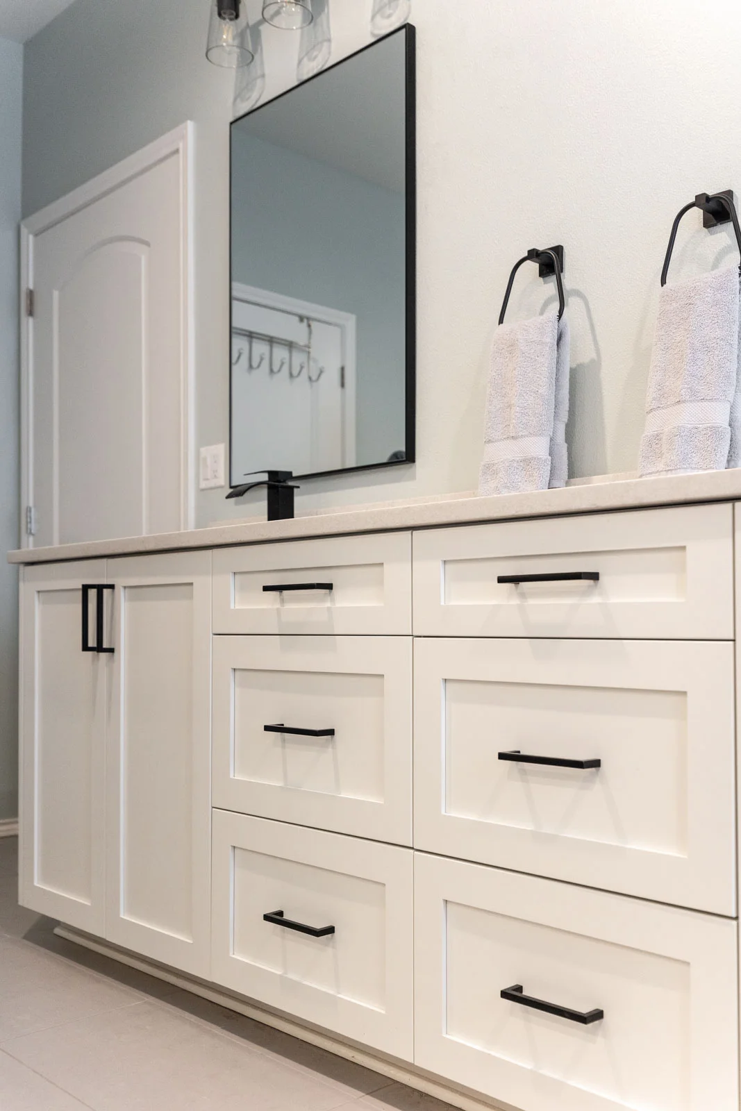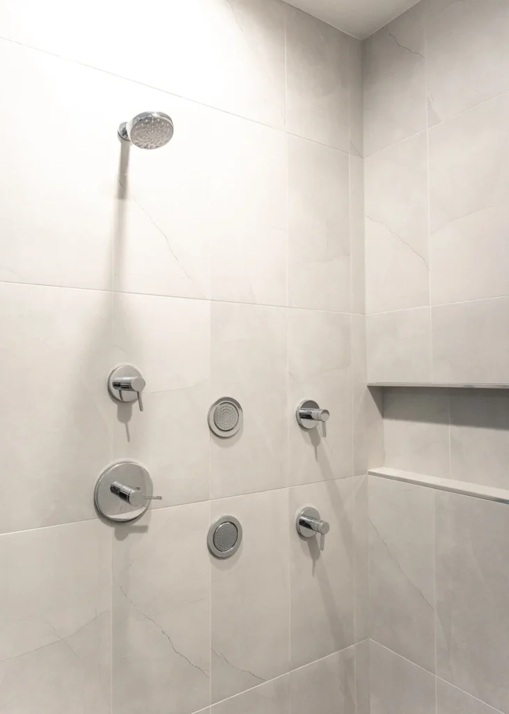 The home improvement project involved adding three new bathrooms and a custom kitchen tailored to the clients’ needs. The bathrooms were upgraded with modern fixtures and stylish finishes, offering luxury and practicality. In the kitchen, we installed custom cabinets and top-quality appliances, creating a beautiful and functional space.