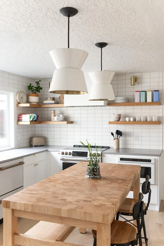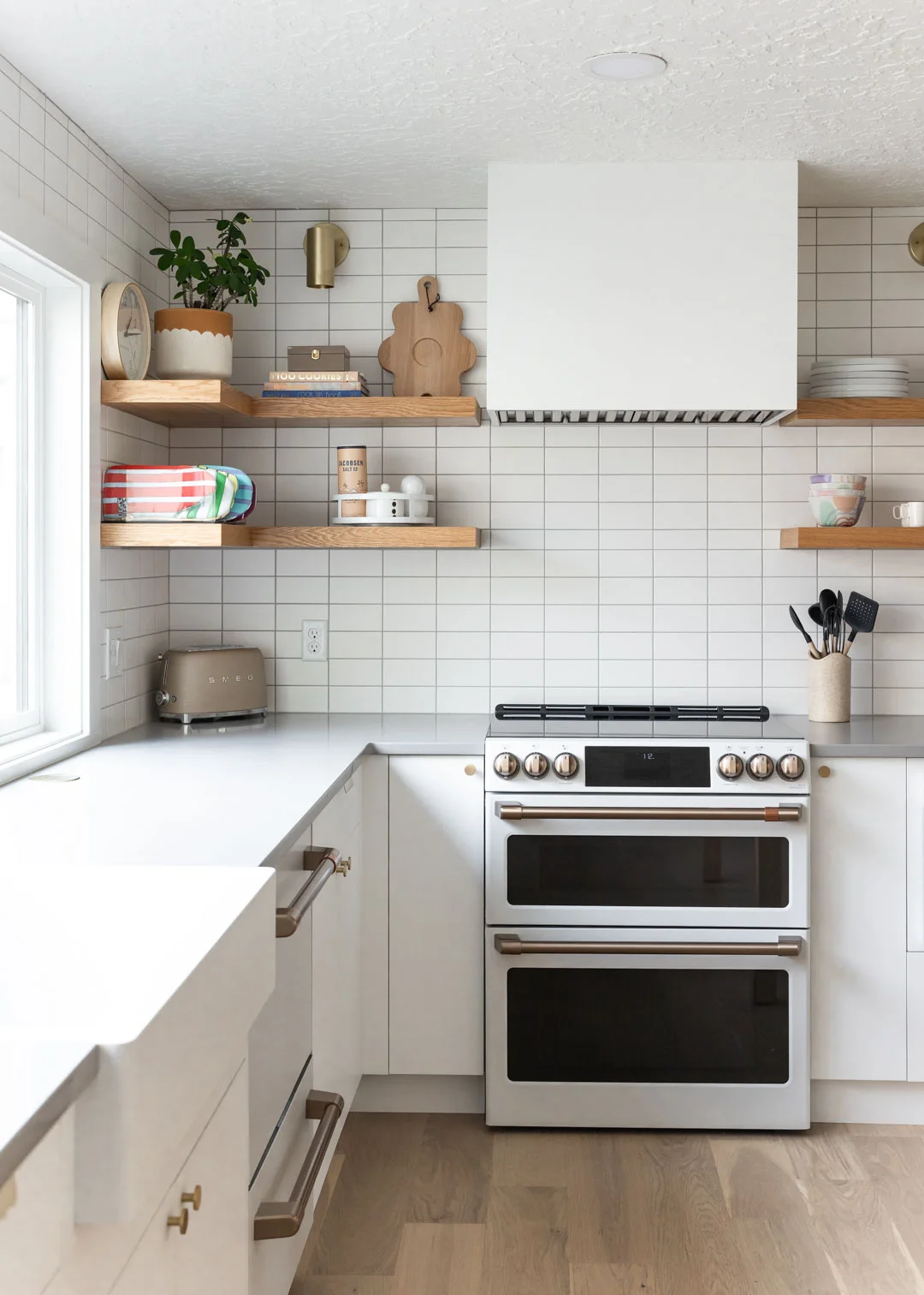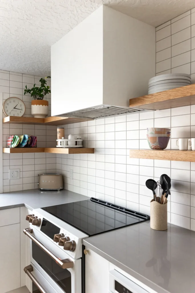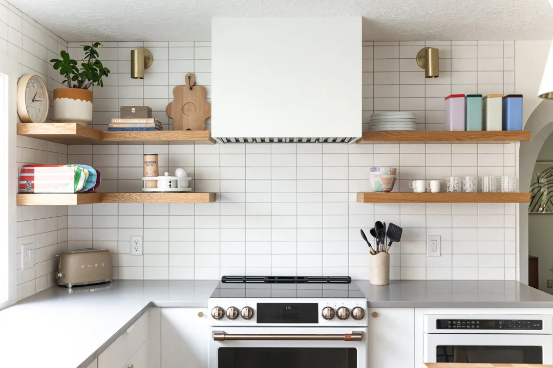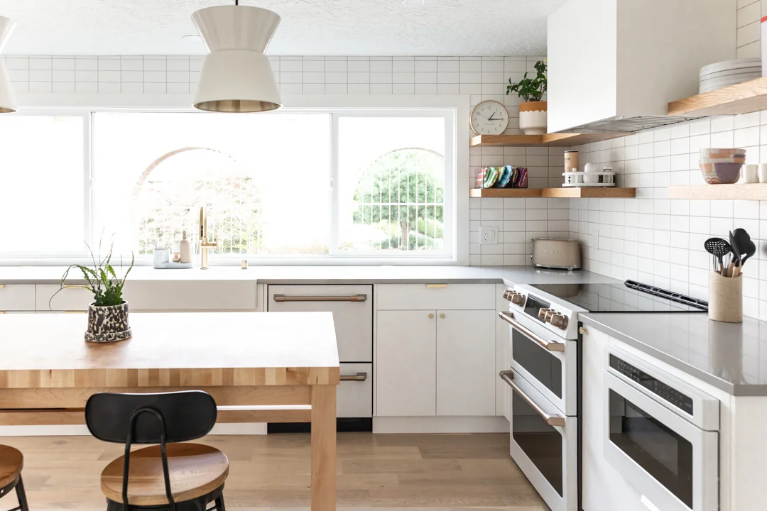 We installed a large picture window to bring in natural light, instantly making the room brighter and more spacious. We also added quartz countertops, custom cabinets, and oak shelves to improve both the look and functionality of the kitchen. These changes were key in turning the kitchen into a place where the homeowners would feel comfortable and happy.
