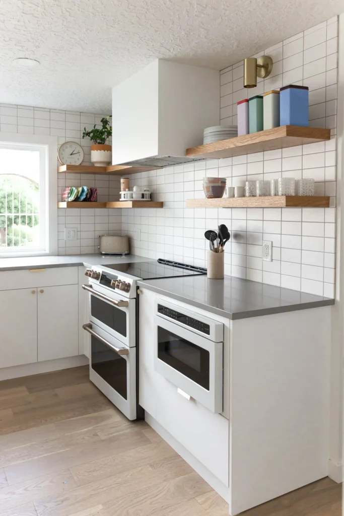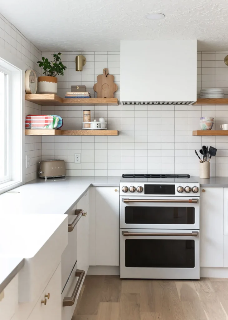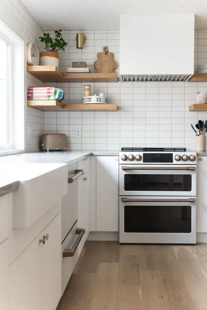In just two months, our team worked hard to bring the homeowners’ ideas to life. We completely redid the old kitchen, starting with new hardwood flooring that replaced the old surfaces. The large picture window became a standout feature, not just letting in light but also providing a nice view outside. We carefully crafted custom cabinets and oak shelves to give plenty of storage while keeping the kitchen looking neat and simple. The quartz countertops added both durability and a sleek, modern touch.